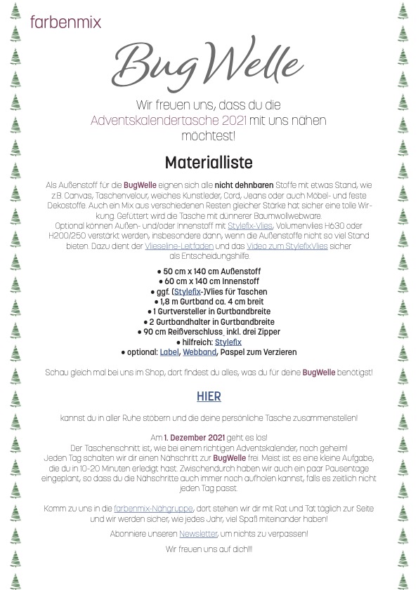 Wenn ich mir die Materialliste so anschaue, hab ich einiges schon zu Hause - aber ein Besuch im Stoffladen meines Vertrauens ist doch noch nötig!